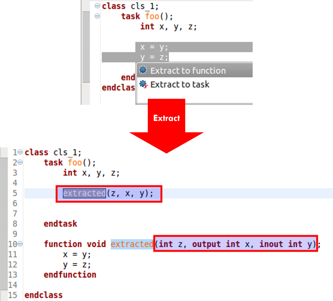 Figure 3: Extraction of selected code to a function
