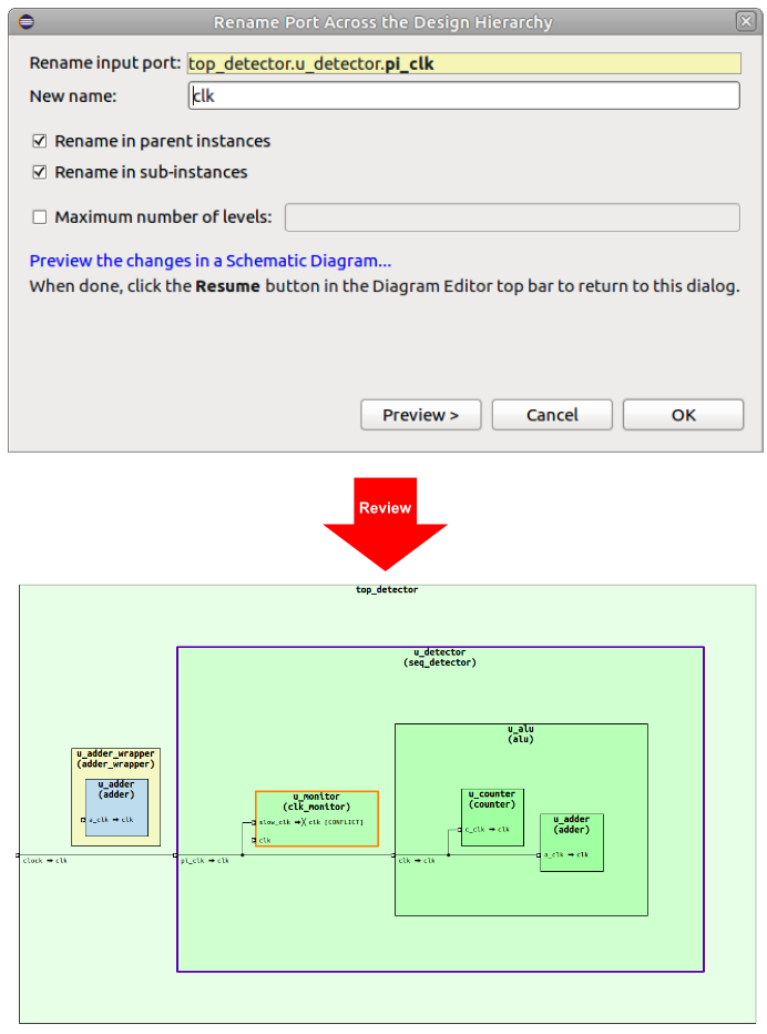 Figure 2: Renaming a port across a design hierarchy
